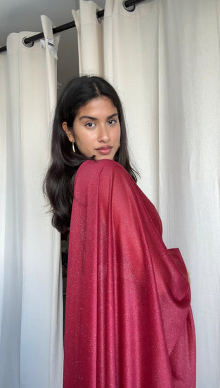 Indulge in simple luxury with our Glitter Saree! This maroon short sleeve design features captivating glitter accents for a touch of elegance. Stand out in the crowd with this unique and eye-catching saree.