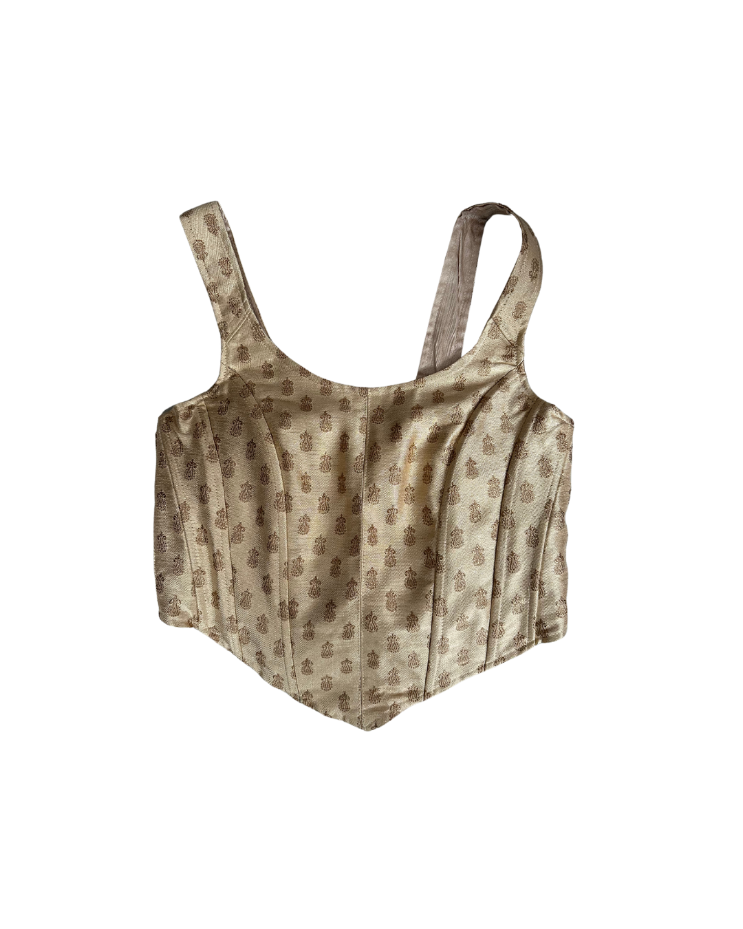 Look your best in this sophisticated brocade corset tie up top. Made of a luxurious material, it's perfect for a special occasion or a night out. Achieve a timeless style with this corset top.