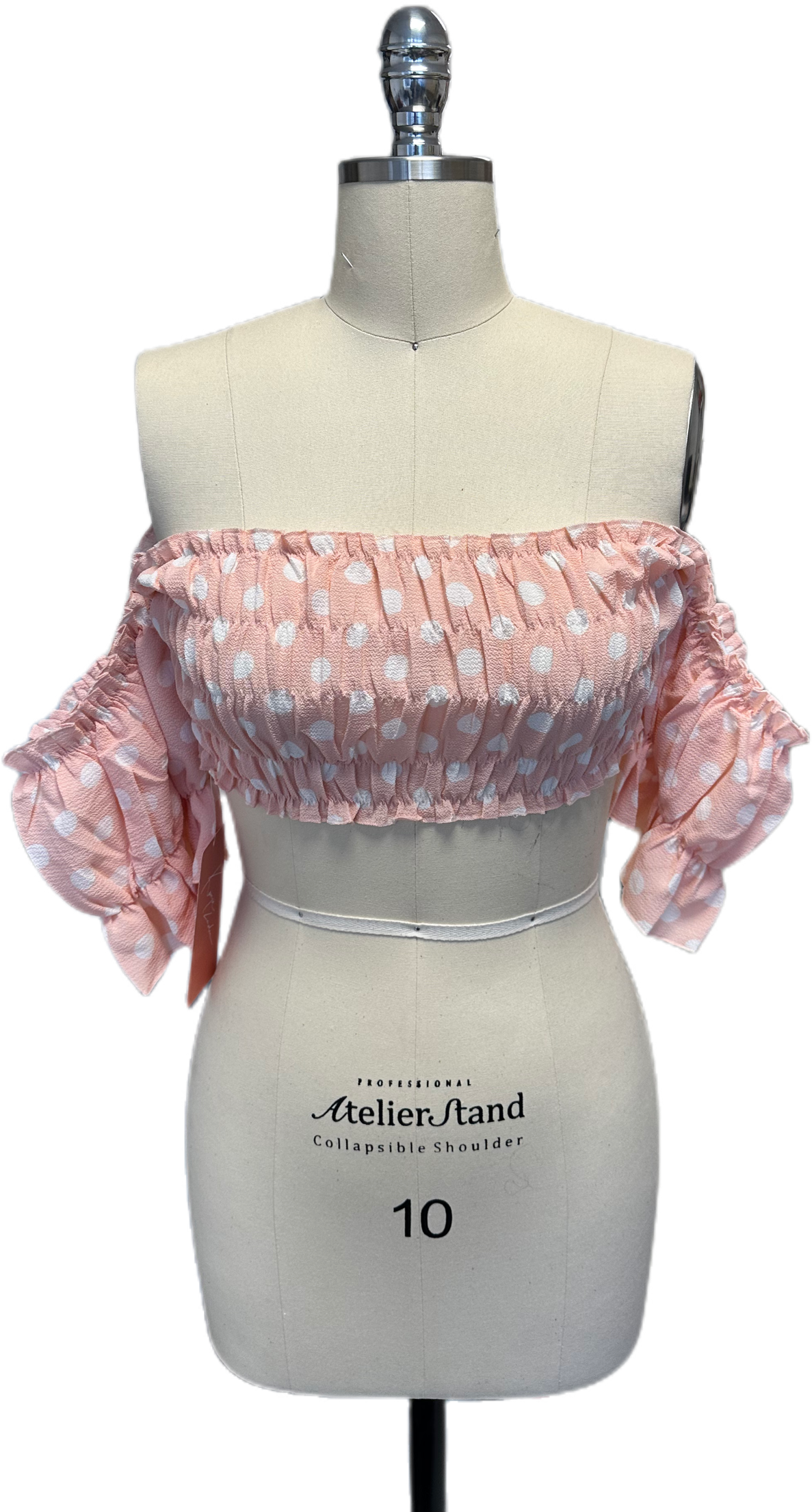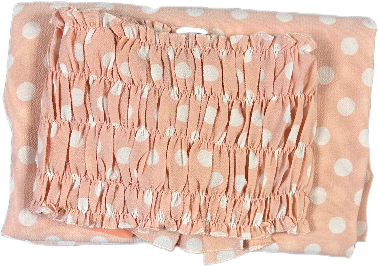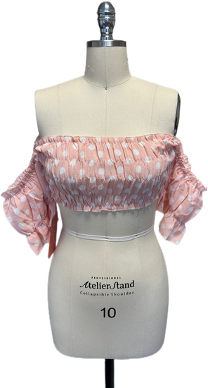 Look beautiful in this light pink polka dot off-shoulder saree. Its luxurious design and material will make you look and feel your best.
